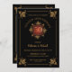 Aniversário de 50 anos de casamento elegante em preto com desenho decorativo dourado.
