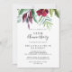 Este convite de aniversário de 50 anos de casamento em caligrafia tropical é perfeito para uma celebração rústica de aniversário de casamento. Este encantador design pintado à mão apresenta preciosas flores de borgonha, roxo e folhagens verdes dispostas de forma elegante em buquês.