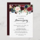 Este convite de aniversário de 50 anos de casamento em caligrafia rústica de outono é perfeito para uma celebração de casamento moderno. O design apresenta flores pintadas à mão radiantes e graciosas em burgundy, vermelho, azul-marinho, azul e blush, inspirando beleza natural.