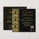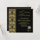 Convite de Aniversário de 50 anos de casamento com padrão dama preto em fundo dourado e duas taças de Champanhe.