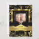 Adicione sua foto ao convite de aniversário de casamento em diamante com damasco preto e dourado. Pode ser usado para qualquer evento! Elegante arco de jóia e design floral com brilho dourado. Eles NÃO contêm jóias ou arcos reais!