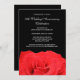 Um convite de celebração de aniversário de 50 anos de casamento com uma rosa vermelha em preto.