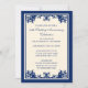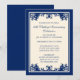 Elegantes Convites de Aniversário de 50 Anos de Casamento. Um convite tradicional de aniversário de 50 anos de casamento com um design de rolo naval azul vintage e fundo creme. Ilustração por © Mujka Design