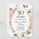 Elegante modelo de convite de aniversário de 50 anos de casamento apresenta uma moldura floral moderna de rosas em rosa poeirento e folhagem verde suave. Todo o texto é editável.