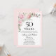 Convite de aniversário de 50 anos de casamento elegante com rosas cor-de-rosa. Todo o texto é editável.