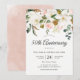 Convite de Aniversário de 50 anos de Casamento Rosado e Flores Brancas