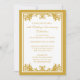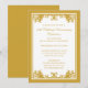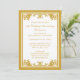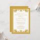Convites de Aniversário de 50 Anos de Casamento em Dourado. Um convite tradicional de aniversário de 50 anos de casamento com um design de floreio dourado vintage. Personalize com os detalhes da sua festa. Ilustração por © Mujka Design
