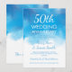 Elegante convite de festa de aniversário de 50 anos de casamento com tema Verão Azul Aquarela, nome e data personalizados e texto adicional.