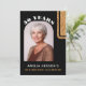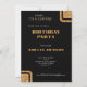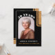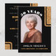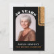 Convite surpresa de aniversário de 50 anos em preto elegante com brilho dourado. Design moderno com brilho dourado falso em um fundo preto com nome personalizado e uma foto em uma moldura arqueada na frente. Personalize o convite na frente e no verso.