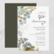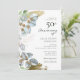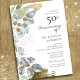 Convites de Aniversário de Casamento de 50 anos Aquarela Folhagem Eucalipto Salvia. Destaque da fonte script com fonte de nome serif legível. Fácil de ajustar para as necessidades do seu casamento.