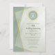 Este convite de aniversário de casamento de 50 anos de estilo geométrico moderno e simples apresenta um tema de cor jade cinza com elementos caligráficos, destaques de moldura dourada assimétrica e aparência de textura de mármore - personalize os elementos de texto para qualquer aniversário ou celebração de aniversário - por katz_d_zynes
