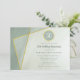 Este convite de aniversário de casamento de 50 anos com design simples e moderno apresenta uma temática de jade esmaecido com elementos caligráficos, destaques assimétricos em moldura dourada e aparência de textura de mármore - personalize os elementos de texto para qualquer aniversário ou celebração de aniversário - por katz_d_zynes