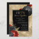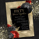 Convite Aniversário de 50 anos Vermelho Preto Dourado Flor
