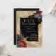 Convites Florais Vermelhos e Pretos para aniversário de 50 anos de casamento. Folhas Florais em dourado falso. Fonte script destacada com fonte de nome serif legível. Fácil de ajustar para as necessidades do seu casamento.
