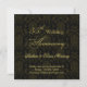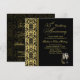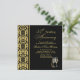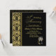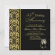 Convite de Aniversário de 55 anos de casamento com padrão dama preto em fundo dourado.