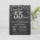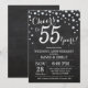 Convite de Aniversário de 55 Anos de Casamento Quadro Preto e Prata. Aniversário de Cinquenta e Cinco Anos de Casamento. Fundo de Diamante Preto e Prata com Brilho. Confetes Prata. Aniversário de Adulto. Festa de Aniversário de Homem ou Mulher. Para personalização adicional, clique no botão "Personalize" e use nossa ferramenta de design para modificar este modelo.
