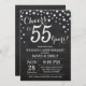 Convite de Aniversário de 55 anos de Casamento Quadro Preto e Prata. Aniversário de cinquenta e cinco anos de Casamento. Fundo de Diamante com Brilho Preto e Prata. Confetes Prata. Aniversário de Adulto. Festa de Aniversário de Mulher ou Homem. Para personalização adicional, clique no botão "Personalize" e use nossa ferramenta de design para modificar este modelo.