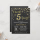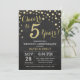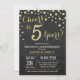 Convite de Aniversário de 5 anos de Casamento Quadro Negro e Dourado. Quinto Aniversário de Casamento. Fundo de Diamante Brilhante Preto e Dourado. Confetes Dourados. Aniversário Adulto. Festa de Aniversário de Homem ou Mulher. Para personalizar ainda mais, clique no botão "Personalize" e use nossa ferramenta de design para modificar este modelo.