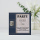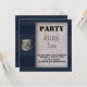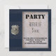 Convite de festa temática de polícia moderna com um padrão azul e tecido de polícia e insígnia de oficial de polícia com idade. Um ótimo convite para uma festa de menino com tema policial. Ou festa de aposentadoria da polícia.
