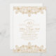 Convites de Aniversário de 60 anos de Casamento Renda Dourada Elegante. Personalizados para os detalhes da sua celebração. Característica de renda com efeito dourado e tipografia em um fundo branco. Você pode facilmente alterar a cor do fundo se desejar. Este convite de aniversário de casamento é projetado por superdazzle.com