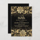 Convite Aniversário de 60 anos Elegante Preto Dourado Flor