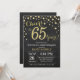 Convite de Aniversário de 65 Anos de Casamento Quadro Negro e Dourado. Sexagésimo quinto Aniversário de Casamento. Fundo de Diamante Brilhante Preto e Dourado. Confetes Dourados. Aniversário de Adulto. Festa de Aniversário de Homem ou Mulher. Para personalização adicional, clique no botão "Personalize" e use nossa ferramenta de design para modificar este modelo.