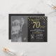 Aniversário de 70 anos de casamento com foto personalizada. Convite em quadro de giz preto e dourado. Aniversário de setenta anos de casamento. Fundo de diamante brilhante em quadro de giz preto e dourado. Confetes dourados. Aniversário adulto. Festa de aniversário masculina ou feminina. Para personalizar ainda mais, clique no botão "Personalizar" e use nossa ferramenta de design para modificar este modelo.