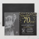 Aniversário de 70 anos de casamento com foto personalizada. Convite de Quadro de Giz Preto e Dourado. Aniversário de Setenta Anos de Casamento. Fundo de Diamante Brilhante Preto e Dourado. Confetes Dourados. Aniversário de Adulto. Festa de Aniversário de Homem ou Mulher. Para personalização adicional, clique no botão "Personalize" e use nossa ferramenta de design para modificar este modelo.