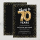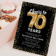 Eleve a celebração do seu marco com nossos convites de aniversário de 70 anos elegantes! Com um fundo preto versátil, brilho dourado cintilante, setenta balões de hélio dourados encantadores e um texto de aniversário de 70 anos moderno que é fácil de personalizar! Adicione seu toque único a este dia especial e deixe seus convidados anteciparem um evento memorável.