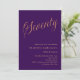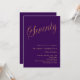 Um convite moderno e na moda para uma festa de aniversário 70. Um fundo de cor púrpura e a palavra Setenta escrita com letras elegantes e grandes em dourado falso. Personalize e adicione um nome e detalhes da parte.