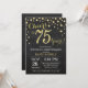 Convite de aniversário de 75 anos de casamento em quadro-negro preto e dourado. Setenta e cinco anos de aniversário de casamento. Fundo de diamante brilhante preto e dourado. Confetes dourados. Aniversário adulto. Festa de aniversário de homem ou mulher. Para personalização adicional, clique no botão "Personalize" e use nossa ferramenta de design para modificar este modelo.