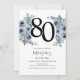 Convite Aniversário de 80 anos Elegante Floral Azul