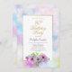 Um convite de aniversário 80 floral azul e cor-de-rosa com borda dourada e pintada de aquarelas.