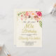 Celebre um aniversário especial com este belo convite de aniversário botânico rosa de aquarela que apresenta bordas florais em cada lado do texto elegantemente colocado. As cores incluem o rosa pálido pincelado, vermelho enterrado profundo e ameixa misturados com verde etéreo e minúsculas flores brancas de sotaque. Personalize o modelo de texto com suas informações. Você pode editar a idade para qualquer aniversário de idade.
