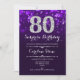 Surpresa 80 de Aniversário. Design púrpura elegante com prata brilhante. Aniversário adulto. Apresenta diamantes, luzes de boque e fontes de script. Homens ou mulheres convidam no dia. Perfeito para uma festa de aniversário na moda. Envie-me uma mensagem se precisar de mais personalização.
