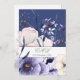 Um convite de casamento personalizado elegante. O convite de casamento apresenta flores azuis e rosadas.