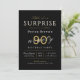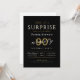 O convite de aniversário de surpresa moderno, clássico, apresenta a escrita de na moda e a tipografia com os detalhes da sua festa em branco, preto e ouro sofisticados, simples e elegante, Excelente para festa de aniversário 90 ou qualquer outra idade,