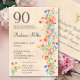 Aniversário de 90 Floral - Flores Selvagens com 90 Anos de Convite de festas. Celebre um marco especial com este elegante convite de 80, projetado para uma mulher maravilhosa. Apresentando um "90" ousado no topo e um delicado design floral em tons de aquarela, este convite combina lindamente sofisticação e charme. Perfeito por reunir os entes queridos para honrar uma ocasião verdadeiramente memorável. Adicione todos os detalhes do evento para criar uma manutenção exclusiva e na moda. Aproveite!