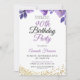 Apresentando flores roxas de aquarela e confete com brilho dourado, este design exude elegância e brilho, perfeito para celebrar um 90 de aniversário.