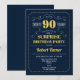 Surpresa 90 de Aniversário. Design de ouro amarelo e marinho retrô elegante. Saúde até 90 anos! pode ser personalizado para mostrar qualquer idade.