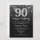 Surpresa 90 de Aniversário. Design branco preto elegante com prata brilhante falso. Aniversário adulto. Apresenta diamantes e fontes de script. Convidado para homens ou mulheres no dia. Perfeito para uma festa de aniversário na moda. Envie-me uma mensagem se precisar de mais personalização.