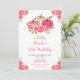 Convite de aniversário russo de cor-de-rosa quente e flores florais. Perfeito para uma festa de aniversário de outono. As palavras podem ser alteradas para se adequarem aos seus próprios detalhes ou requisitos