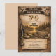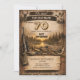 Celebre um aniversário marcante com este convite rústico temático de caça! Perfeito para o amante do ar livre na sua vida, este design apresenta um fundo de madeira vintage, silhuetas majestosas de cervos e uma vista panorâmica de um lago que define o tom para uma celebração rústica e elegante.