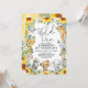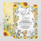 Celebre o seu pequeno selvagem ao completar um ano com este convite de aniversário temático de safari na selva. O design apresenta um grupo de adoráveis animais de safari, girassóis vibrantes e folhagens rústicas.