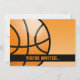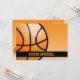 Modelo de convite de festa de aniversário de basquetebol de desenho animado laranja e preto.