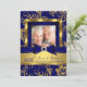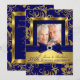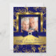 Convite de Aniversário de Casamento Azul Marinho Diamante Dourado. Elegante arco de jóia azul e desenho floral com brilho dourado. NÃO contém Jóias ou Arcos Reais!