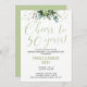 Este lindo convite de aniversário de bodas de 50 anos com flores verdes pode ser personalizado com seus detalhes.