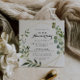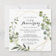 Este convite de aniversário de bodas de 50 anos geométrico tropical dourado é perfeito para uma celebração romântica de aniversário de casamento. O design apresenta belas folhas verdes pintadas à mão, adornando uma moldura geométrica dourada.