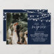 Celebre o seu dia especial com este convite personalizado de aniversário de casamento com foto. Este design apresenta uma bela tipografia "shhh...é uma surpresa" e luzes de corda em um fundo azul marinho. Você pode personalizar o texto para qualquer ano. Substitua a foto de amostra pela sua própria foto. Suprimentos para festa combinando disponíveis na minha loja BaraBomDesign.