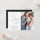 Convites de Foto para Renovação de Votos de Aniversário de Casamento Elegantes com tipografia de roteiro elegante em folha de prata falsa moderna e chique. O verso tem uma moldura luxuosa em folha de prata e muito espaço para o seu texto. Adicione facilmente a sua própria foto e detalhes para um convite deslumbrante! Ótimo para Aniversários de 25 anos de Prata e mais!